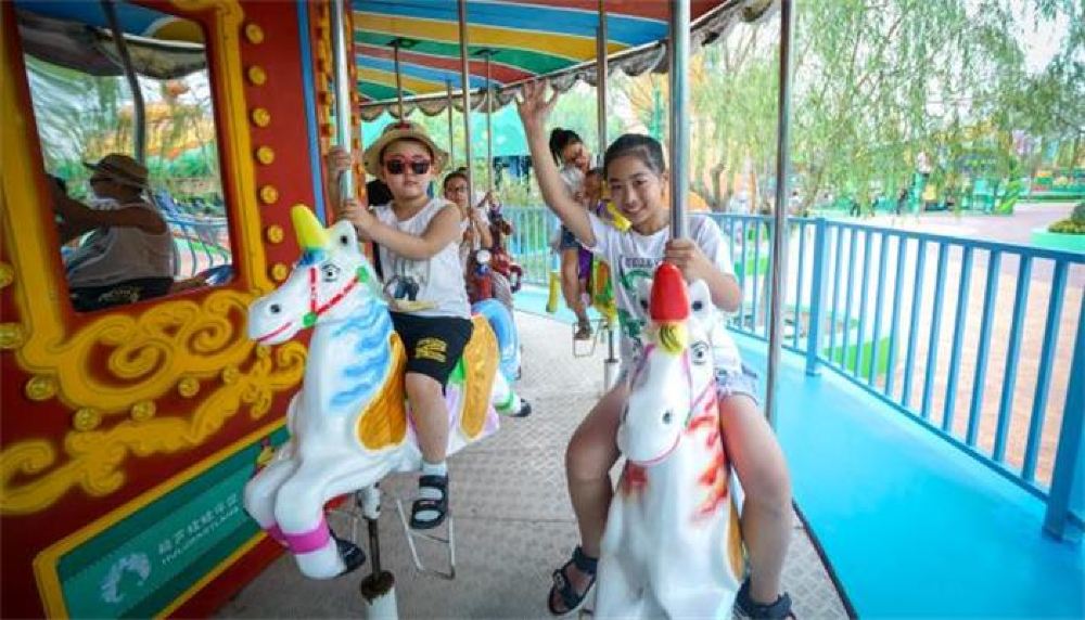 葫芦童话王国欢乐园-越玩越出息的儿童乐园 4个板块:益智成长、探奇体验、亲近自然、嬉水乐园。 16项主题游乐:旱喷广场、海盗船、儿童碰碰车、转转杯、旋转木马、青蛙跳、轨道滑车、滑翔飞翼、摇头飞椅、勇士探险岛、娃娃之家、无动力综合攀爬区、秋千区、四季滑、嬉水乐园、草坪广场等不限次数,无限畅玩。