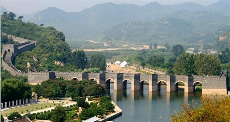 【九门口水上长城】位于绥中县郊,地处辽宁与河北两省交界处,它始建于北齐,扩建于明初(1381年)。它与南部山海关方向的长城相接,并一直向北延伸到九江河,然后筑起一段一百多米的巨大跨河城桥,因城桥下有九个泻水城门而得名。还可登上山脊上的长城遗址远眺四方,群山、城墙、烽火这里,你可以站在城桥上参观这座独特的古代军事要塞、进入长城隧道探寻建在洞中的军事设施台组成的风光甚是雄伟。
