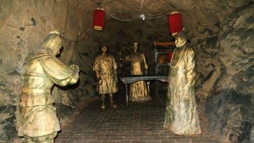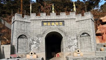 【明长城隧道】全长1027米,是明将徐达根据九门口长城所处险要的地理位置,开掘出的一条从长城内侧校军场不经九门城关而秘密直通关外的山中暗道。里面设有两个入口,一个入口直通点将台,另一个入口直通一片石古战场,出口直通关外。隧道里面有号钟室、卫生间(茅房)、禁闭室、中军室、水牢、存粮库、伙房、水井房、碾房、兵器室、练功房、炮室、刑具展室、驻军室、佛室、关公和山神祭拜室等29个溶洞室。