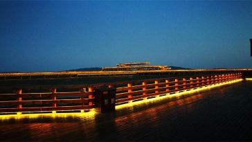 兴城红海滩是继城、泉、山、海、岛、河之后的又一重点景观,它的建成使兴城北起龙回头,南到兴城海滨、兴城红海滩、徐大堡金沙湾浴场,形成一条50公里长的滨海公路景观带。走进木栈道景观平台,尤如登上了一艘"航母",近观红海滩,万紫千红,远眺觉华岛,海天一色。